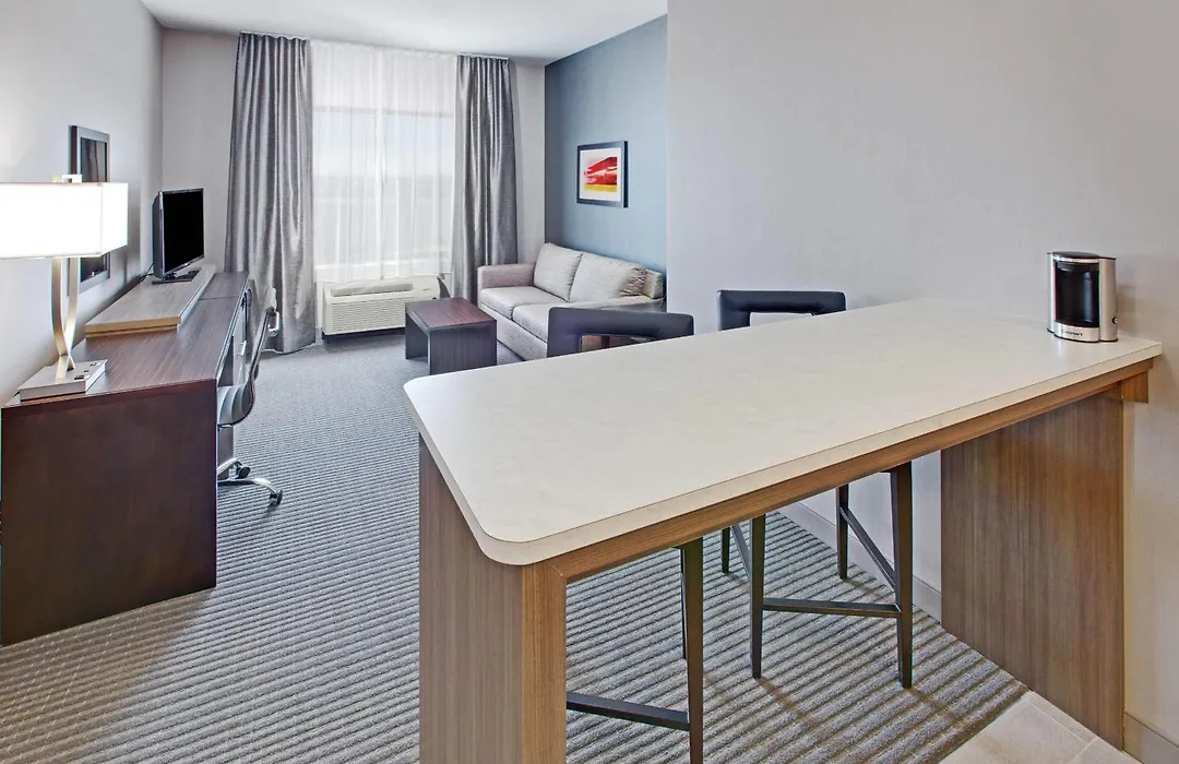 Compared to downtown boutique options, airport-oriented hotels in this market tend to offer larger room footprints with dedicated work desks, seating areas, and in-room kitchenettes at some properties - features that matter during multi-day conferences. Trade-offs include a more generic surrounding environment and reliance on driving, but for travelers whose agenda includes both a convention and a flight, consolidating logistics into one hotel near both anchors saves meaningful time and cost.